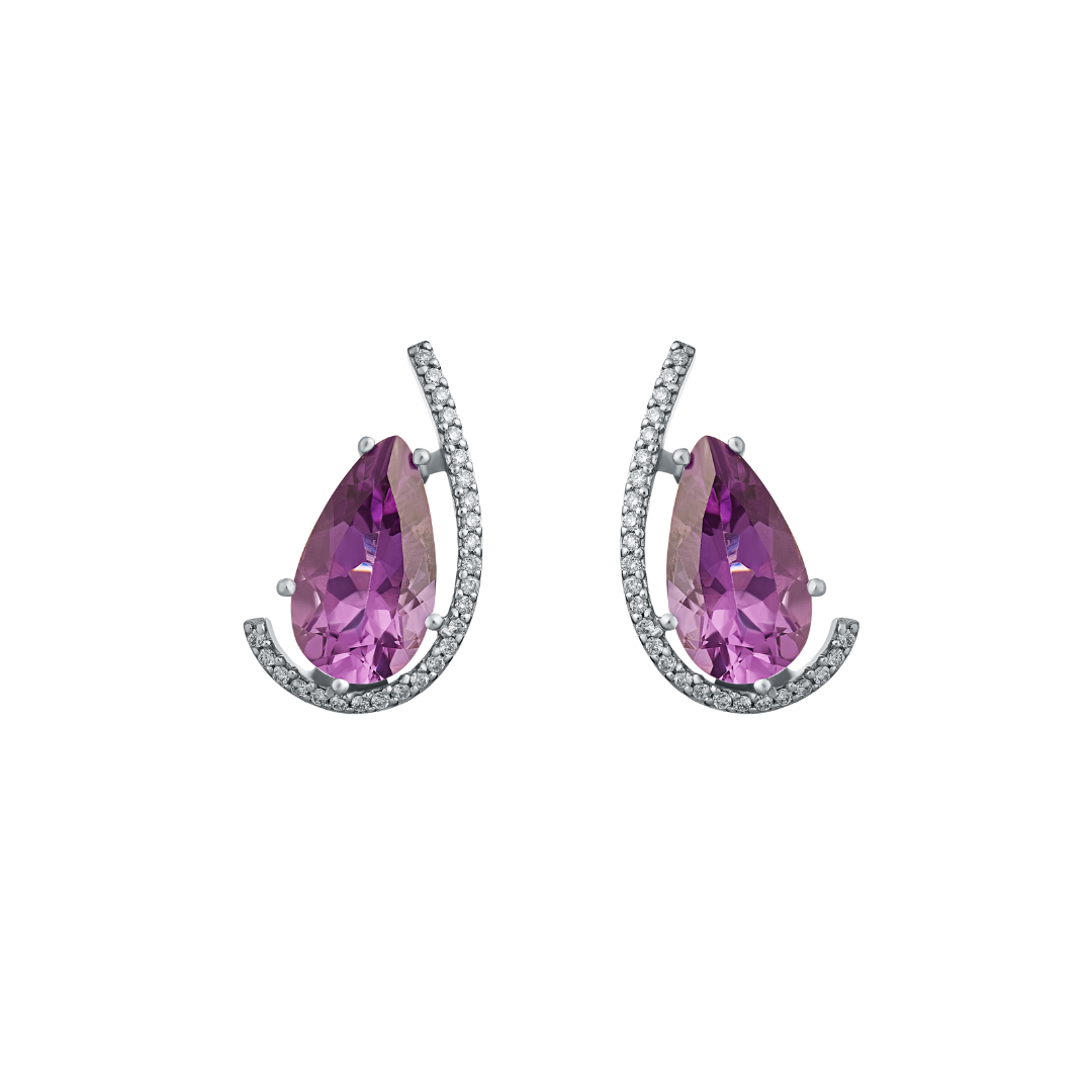 18K White Gold Amethyst Diamond Earing