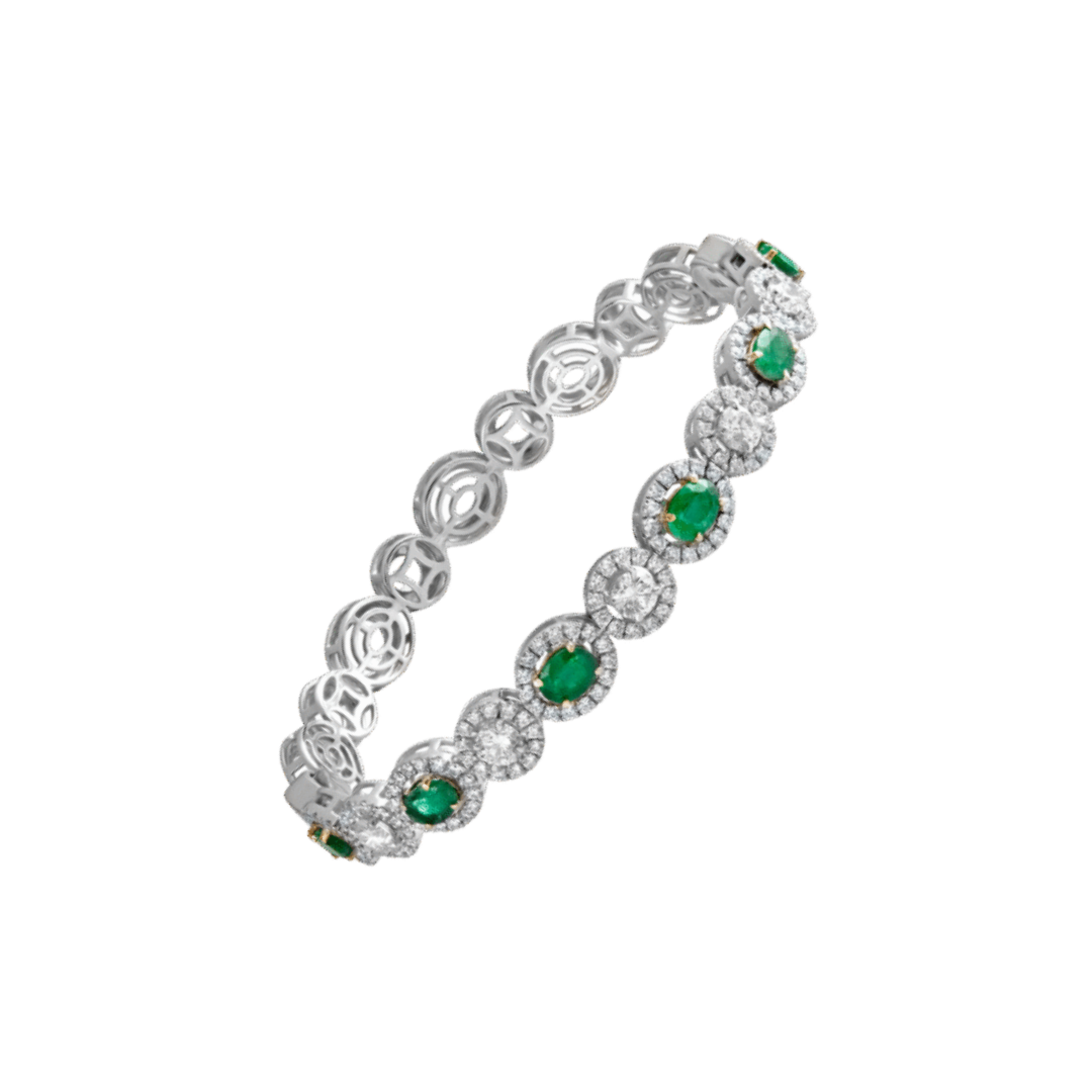 18k white gold Emraled & Diamond bangle