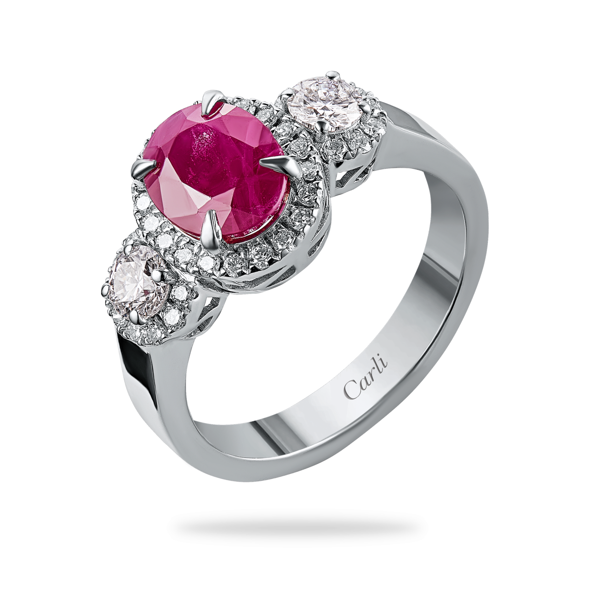 18k white gold diamond ring with Ruby Dia: 0.87 ct Ruby: 2.83 ct Gold : 6.19 gram VS G H. C-450